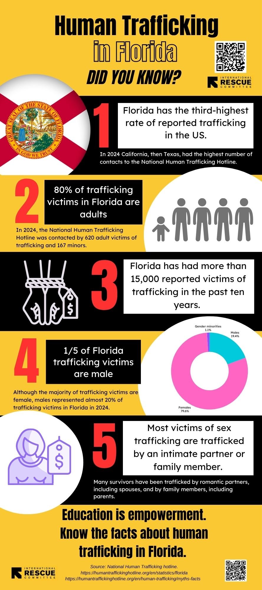 I created this infographic (below) and flyers for the International Rescue Committee’s anti-trafficking team in Miami in response to the need for greater awareness of the scale and types of human trafficking prevalent in Florida. Designed for a general public audience, they can also be adapted for fundraising materials.
